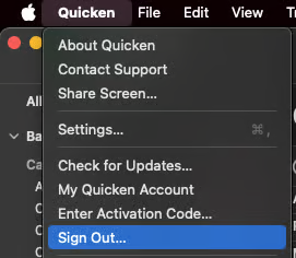 - Go to Quicken in the toolbar menu at the top left.
