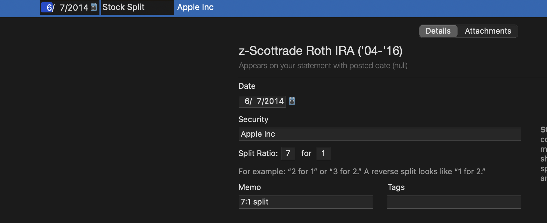 Stock Split Entry