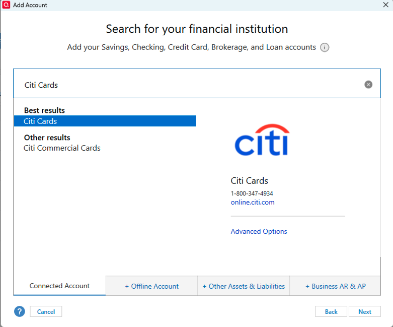My "Citi ThankYou Mastercard" does NOT log on to the same Citi website that a "Citi Custom Cash" card uses. Quicken gives me the "Citi Custom Cash" logon website and there is no way to direct Quicken to go to a different logon website. (Yes, it IS ridiculous that Citi is doing this, but there it is.)