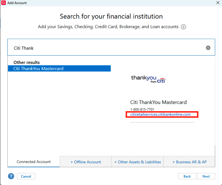 • Just to clarify, does the URL from Citi ThankYou Mastercard not match the financial institution website you use to sign in?