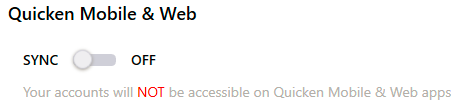 …Quicken decided during the reconnection of my 5 Fidelity accounts to enable them for 'Syncing' to the cloud. I noticed this when I turned on the Sync button and saw that the 5 Fidelity accounts were enabled for 'Syncing'.