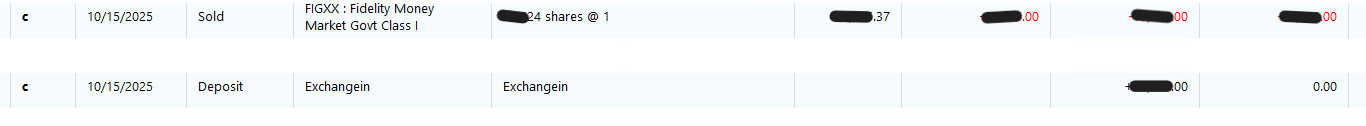 FDRXX and FDZXX are still recognized as investment positions not cash per my download at 4pm ET.