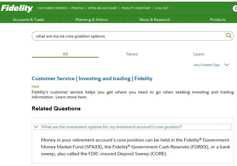 But what you posted from the Fidelity website showing that FDRXX is still a Core Position option for IRAs maybe means this might simply be a matter of conflicting documentation on the Fidelity website and we really don't know whether or not something has actually been changed regarding the Core Position options. (Sigh!)