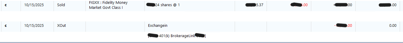 This was a sale of FIGXX and a transfer out to the BrokerageLink account. I fixed it as such: