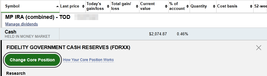 Interesting, FDRXX still shows up as the core position for my IRA.