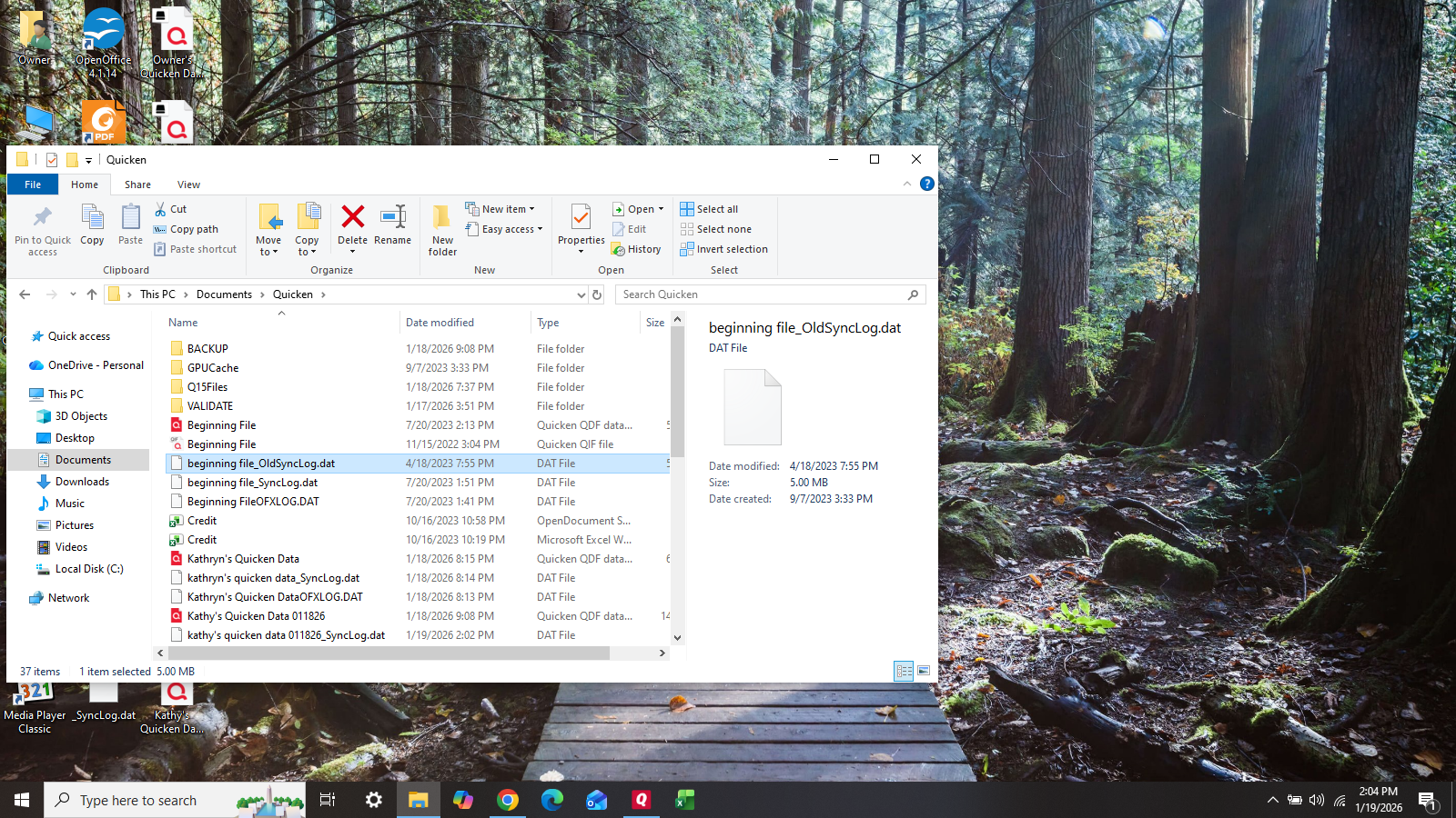 As for what file I had used, I really don't know how to tell the difference. What is the difference between the files with the red Quicken icon and the others? I probably chose a DAT file. Whatever it was, it was data from 2015, so not useful.