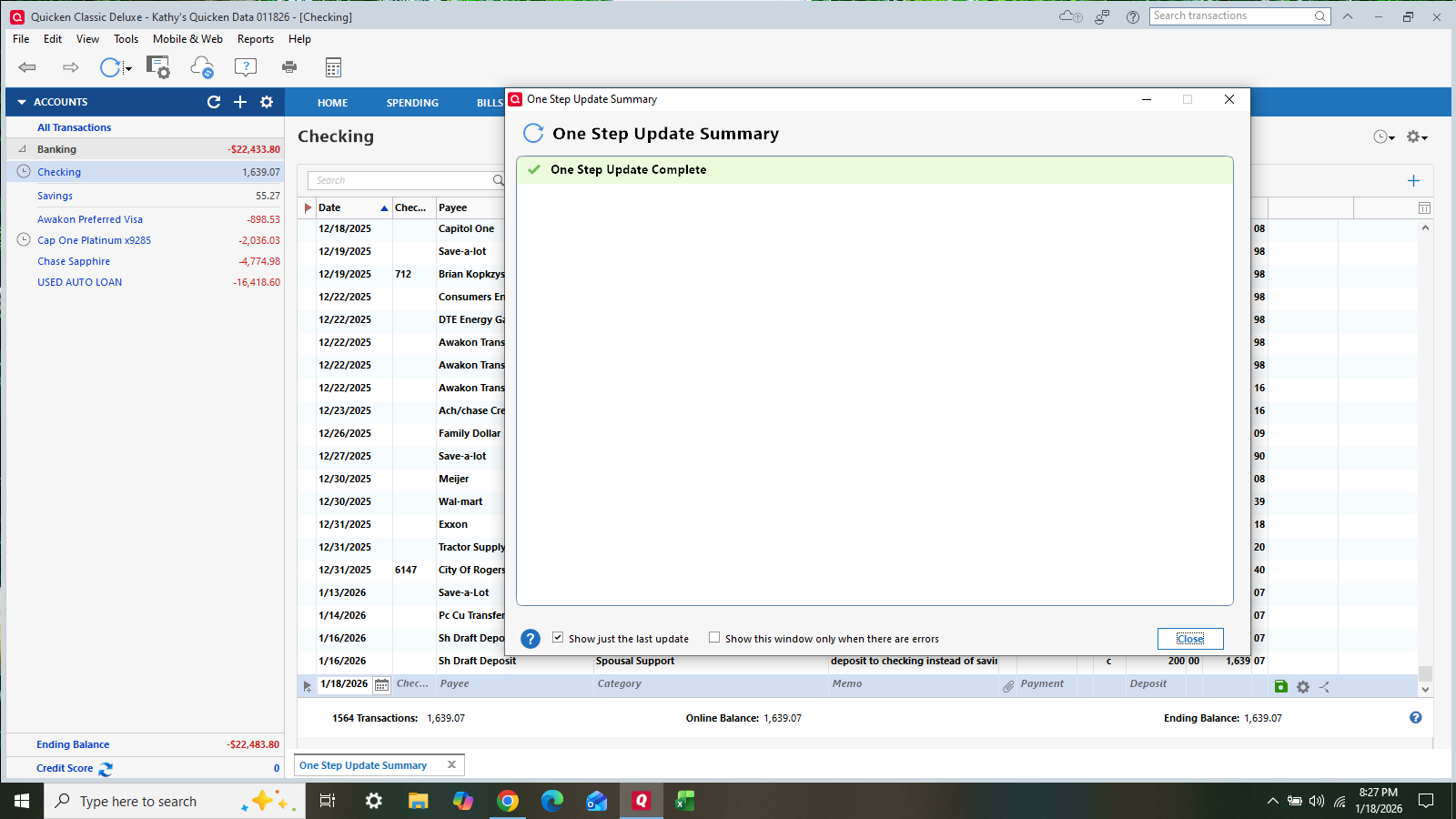 I also did a backup and validate my files also. No change. I don't do anything on mobile, and it's turned off. Im having the same problems with my other accounts at the same institution. In waiting on an answer, I tried to restore a backup from 1/1/26. What a problem! Now on my two credit card accounts, it's asking for the account to be reauthorized, but it won't do it. It just tries to duplicate my account for both of them.