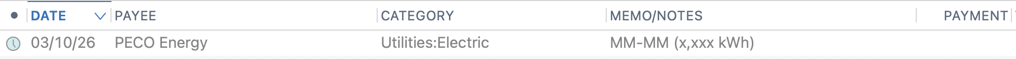 For recurring bills which are typically the same each month, like my cell phone bill, the Amount is included in the scheduled transaction, but it's easy to edit if there's a variation in any month.