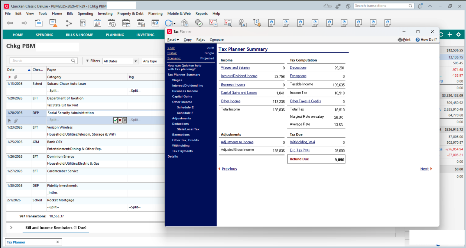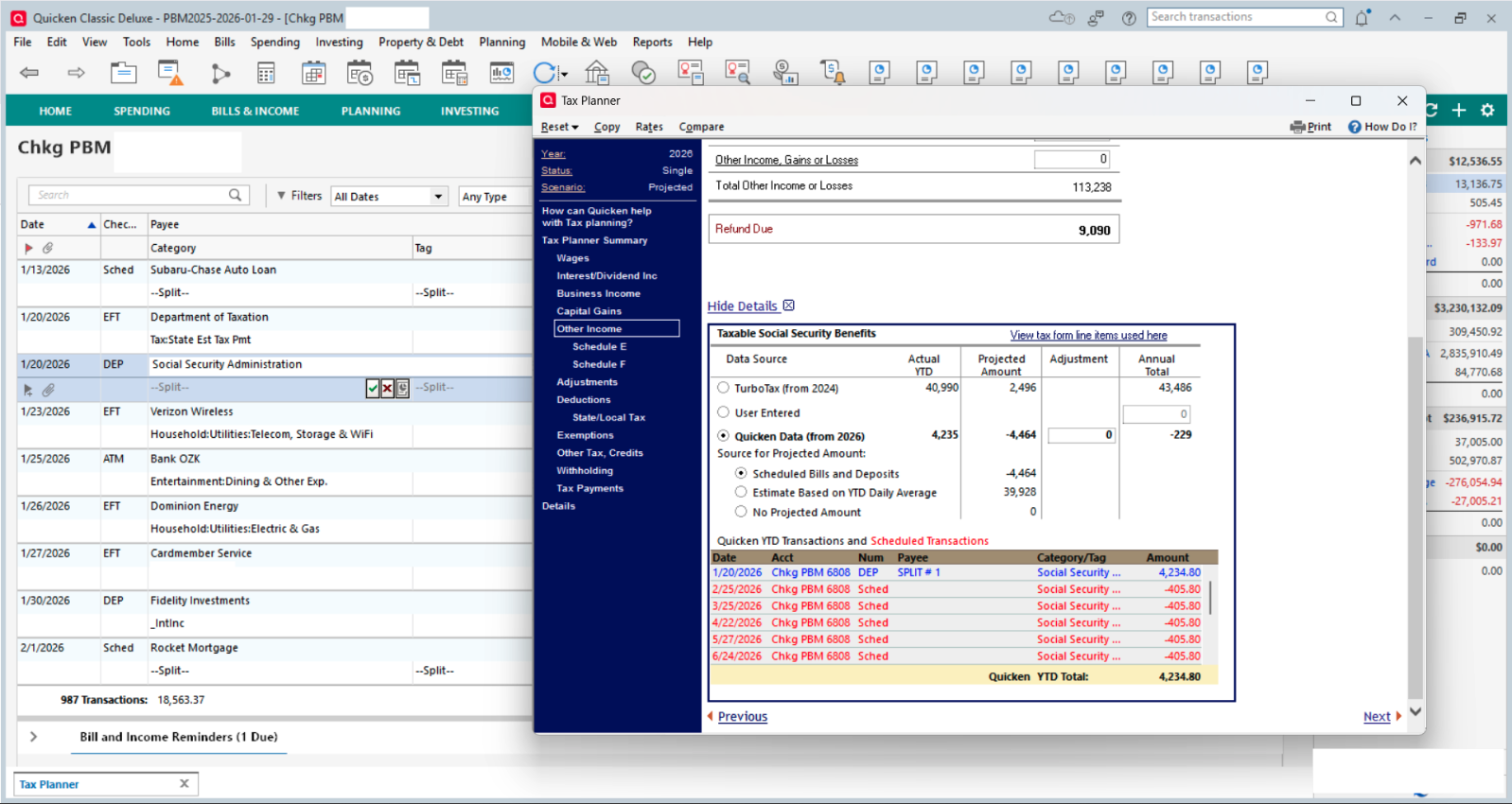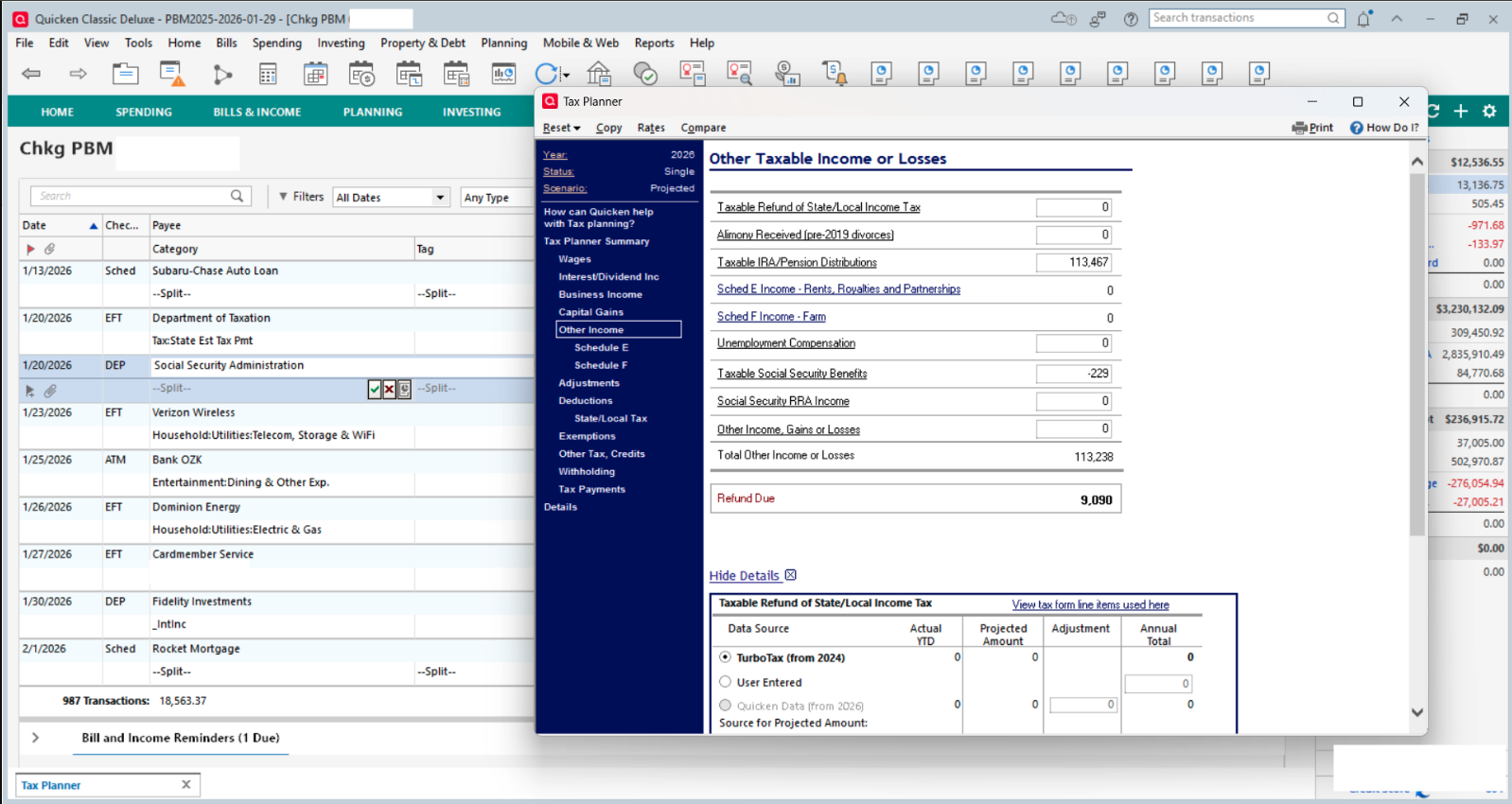 When my 2026 pension, social security and 401k income was planned as an Income Reminder, TaxPlanner appeared to be looking back at 2025 data and the calculations were incorrect.