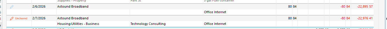 The bill is showing as a "Pending" transaction on my bank web app. But it does not show as a "Pending" transaction in my Quicken desktop app. It's as if it matches the pending transaction to a manual bill reminder, and then removes it from the pending list, and adds it into the register with a blue pencil. The date of the pending transaction on the bank web app is 2/6/2026, which matches the blue pencil transaction date.
