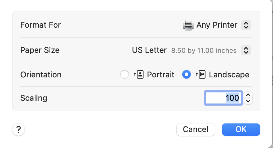 The Paper Size and Orientation have been moved into the Print dialog box in the newer reports. What is missing is Scaling, which could be very useful in trying to get more data per page. Instead, the current Print dialog box adds the option to scale to fit a report to one (or more) pages wide: