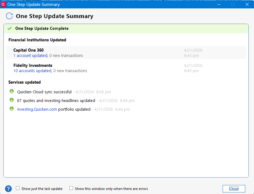 - Restart Quicken.